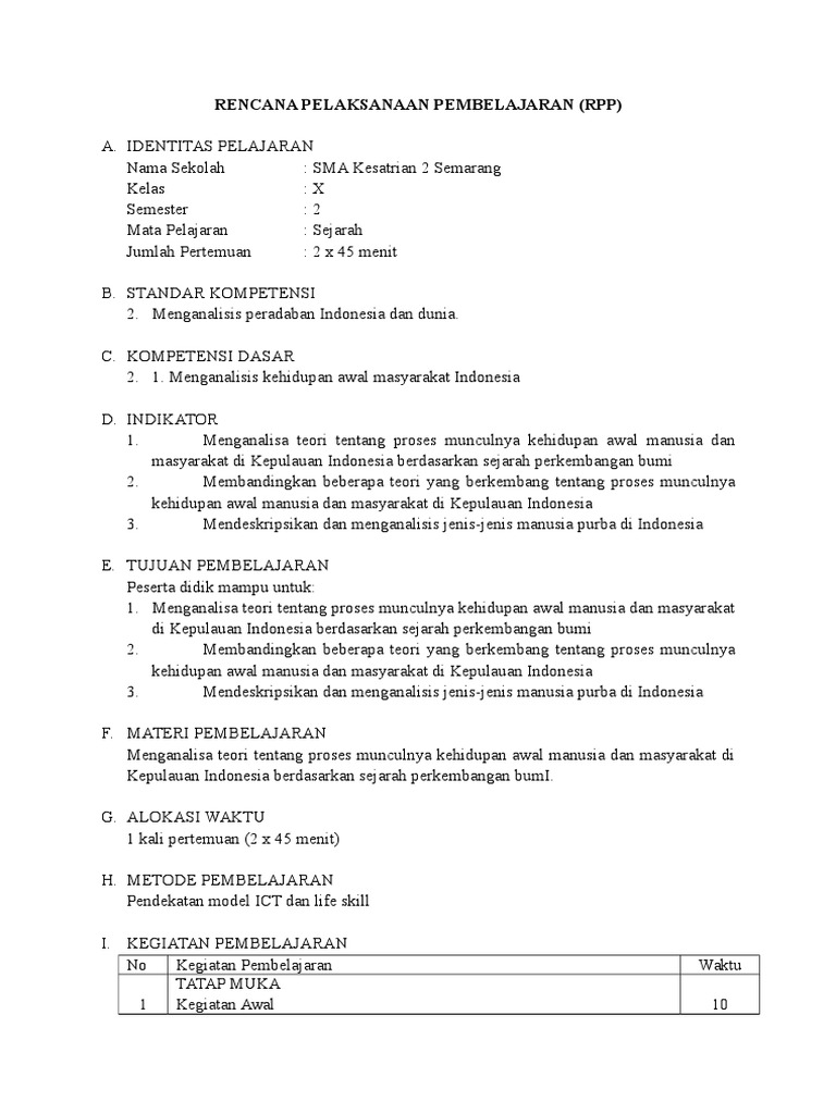 Rpp sejarah indonesia untuk siswa kelas x.
